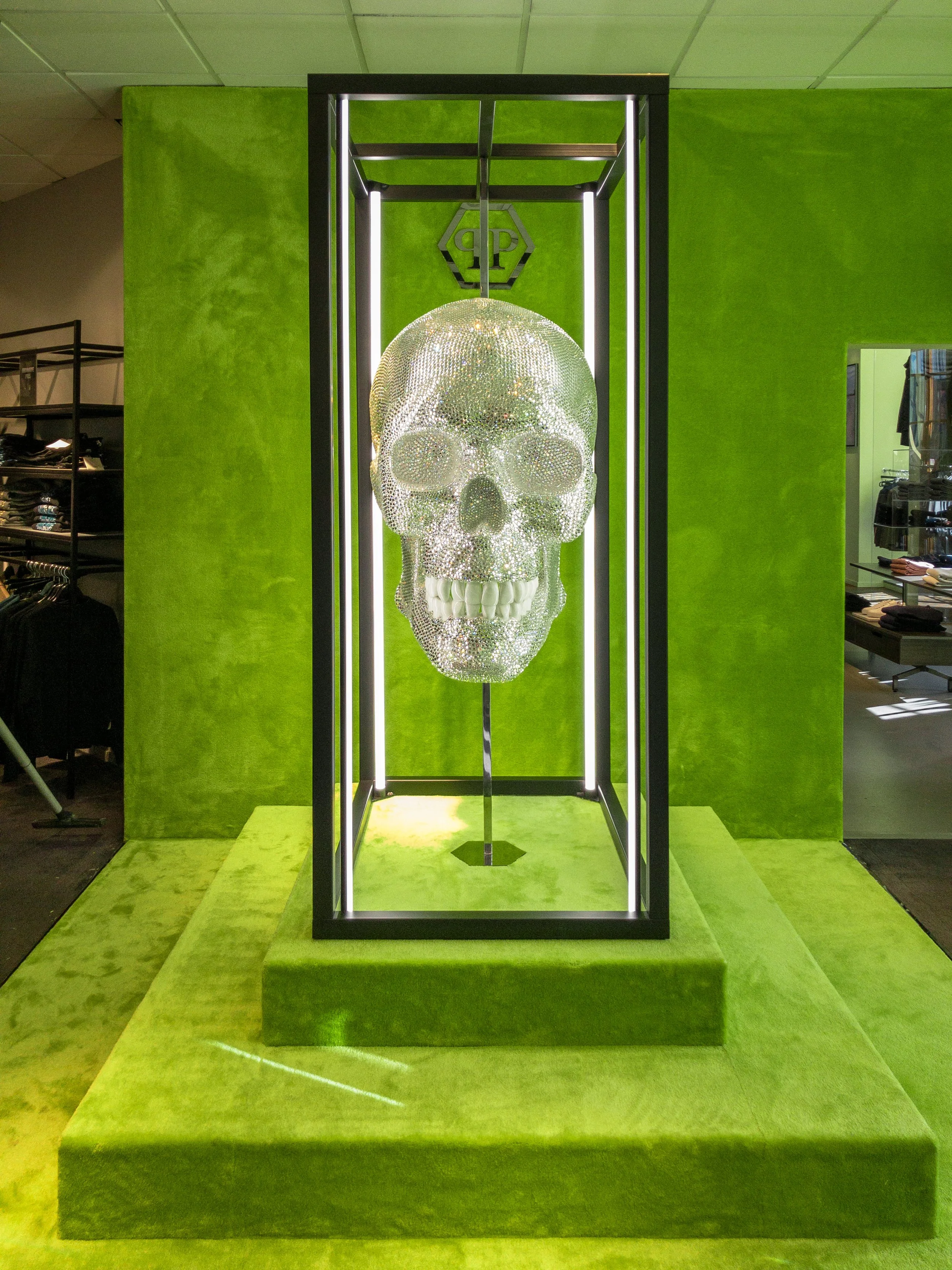 A colorful and artistic Philipp Plein SIS in NK Herrtrend, located at Nordiska Kompaniet Stockholm.